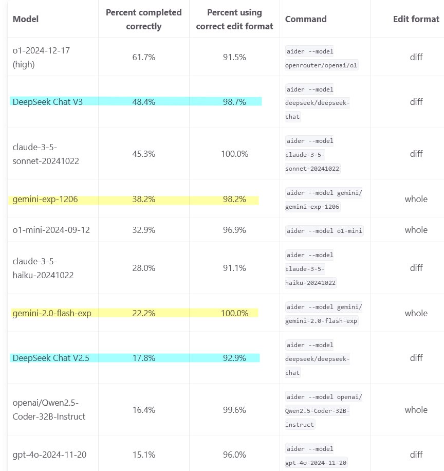 At the beginning of 2025, unexpectedly, the Chinese DeepSeek V3 (671B MoE) is showing very good results. Now they have discounts until February 8 on tokens, well, and the price is $0.14/M input $0.28/M output, but the context window is cut (you can buy on openrouter ) does not compare to o1 and claude-3.5-sonnet.