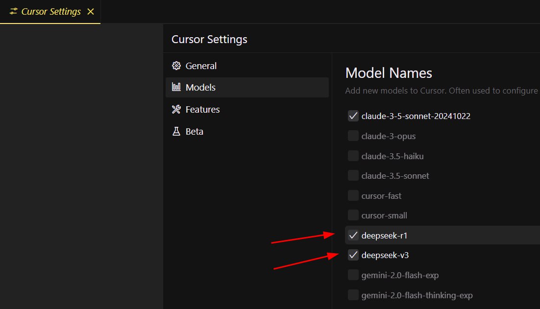 DeepSeek models: DeepSeek R1 and DeepSeek v3 are supported in versions 0.45 and 0.44. You can enable them in Settings > Models. We host these models in the USA.